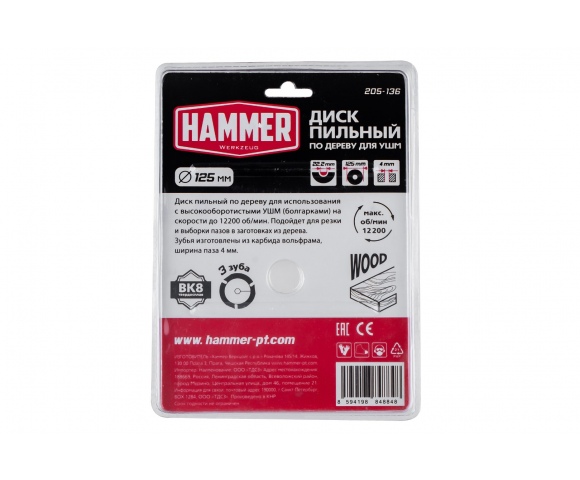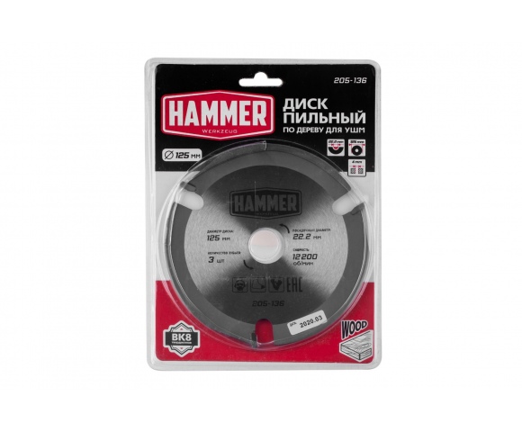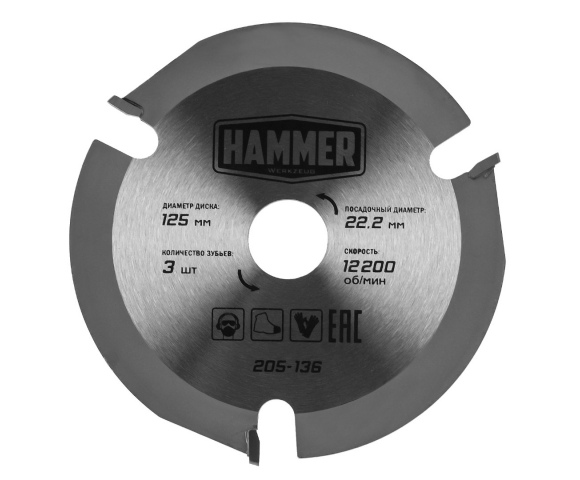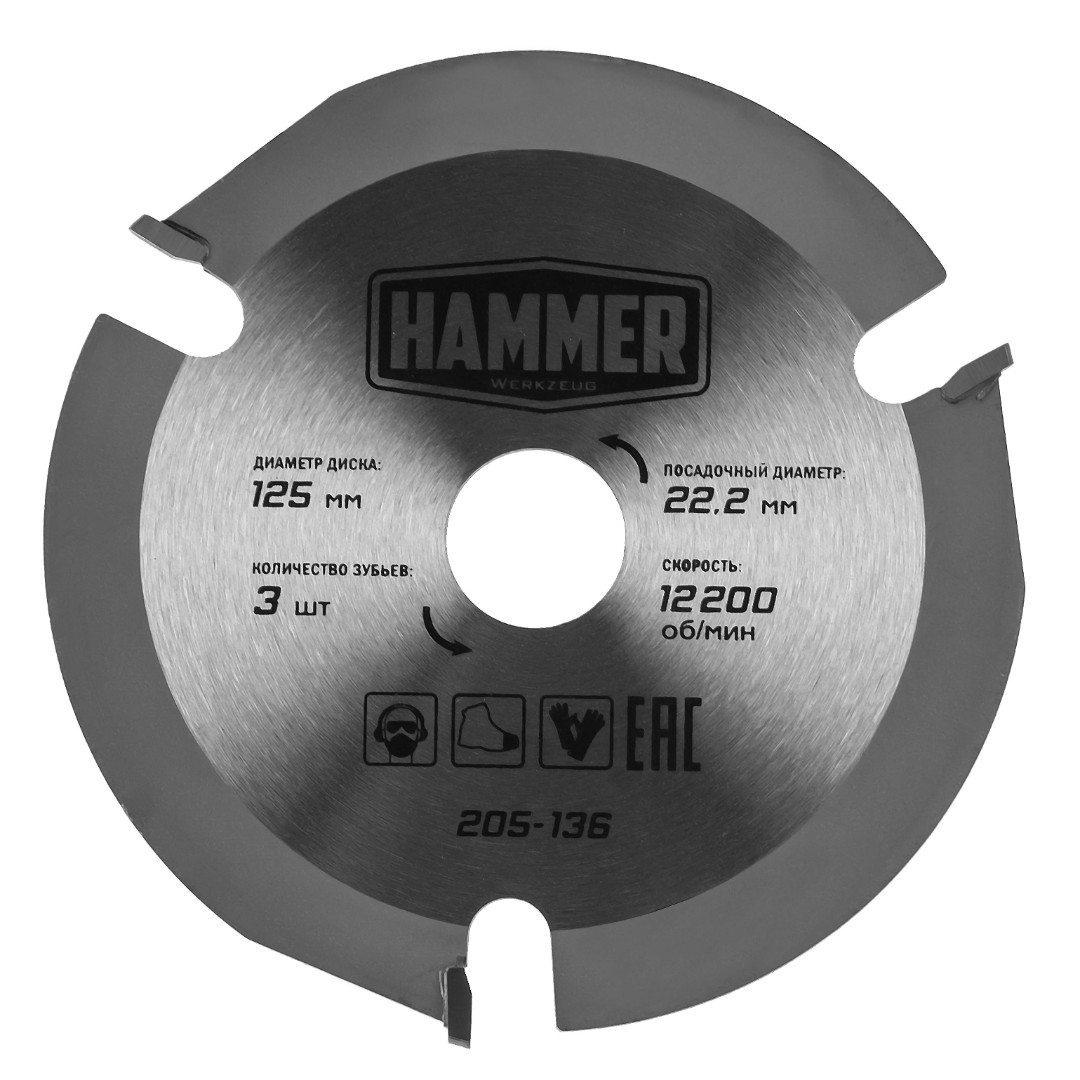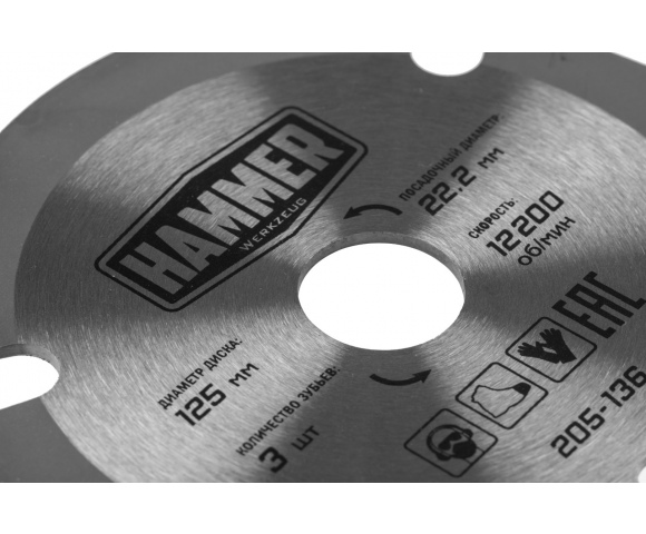 Диск пильный твердосплавный HAMMER Ф125х22мм 3зуб. (205-136)