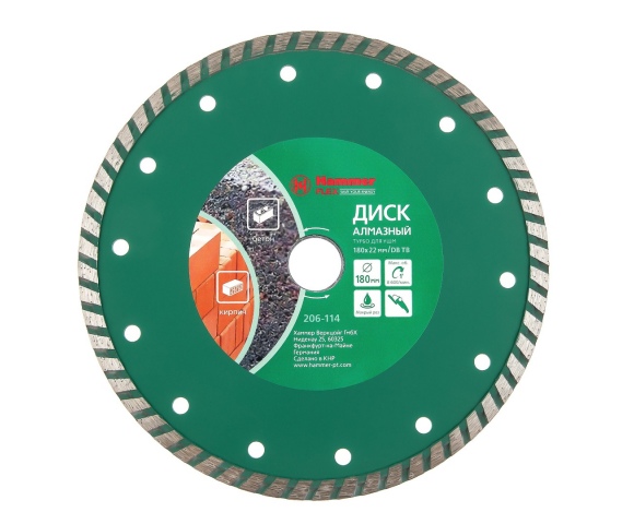 Диски серии ''Турбо'' предназначены для работ по бетону, граниту, мрамору, кирпичу, камню. Радиальные углубления на сплошной кромке обеспечивают воздушное охлаждение диска и точный рез даже тонкого материала.