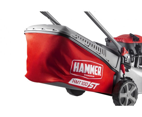 — Травосборник из влагостойкой ткани удобен в использовании — вмещает 45 литров, снимается в два движения и легко чистится;