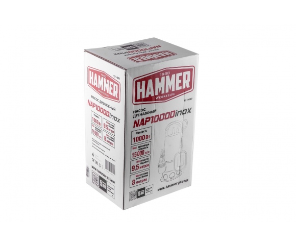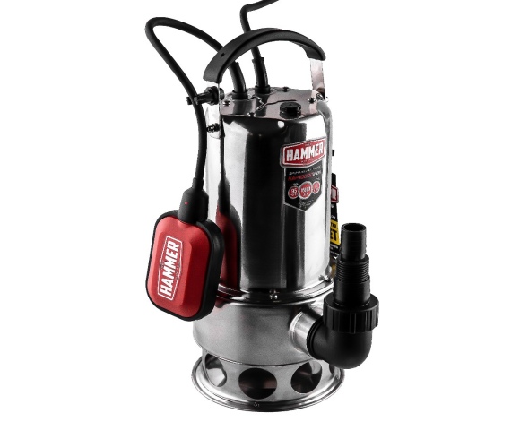 HAMMER NAP1000DInox – дренажный фекальный насос для откачивания загрязнённой воды или отвода сточных вод. Пригодится на даче, автомойке или за городом.