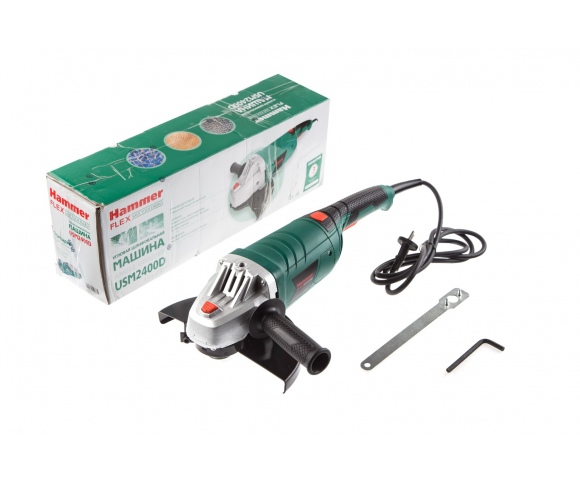 HAMMER USM2400D – производительная углошлифовальная машина мощностью 2400 Вт. Совместима с дисками 230 мм. Предназначена для резки, обдирки и шлифовки металлов без применения воды. Работает от электросети.