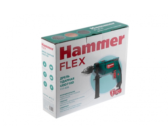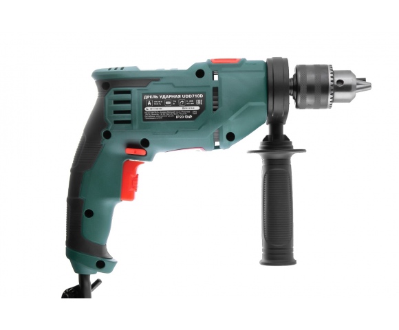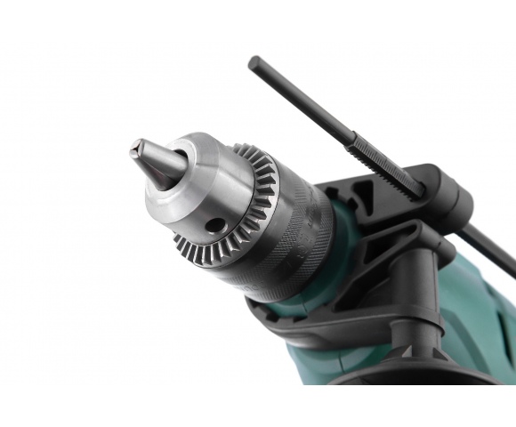 Ударная дрель с двигателем мощностью 710 Вт идеально подойдет для сверления дерева, металла и кафеля в безударном режиме, а также кирпича и легкого бетона в ударном режиме. Благодаря ключевому патрону обеспечивается максимально надежная фиксация оснастки. Для точной настройки инструмента в зависимости от материала предусмотрена электронная регулировка оборотов. Извлечь сверло иил вывернуть крепеж поможет встроенный реверс.