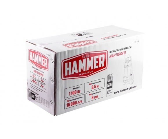 HAMMER NAP1100FD – погружной фекальный насос для откачивания грязной воды из рек, водоёмов или подвалов, а также для отвода канализации. Пригодится на даче, за городом или в саду.