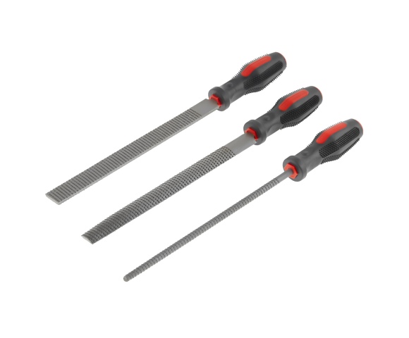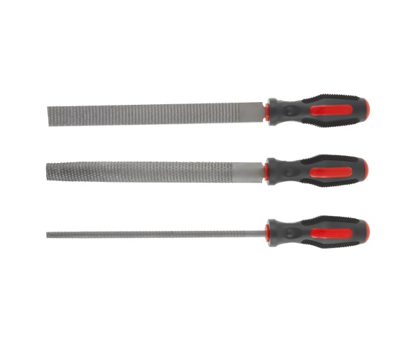 Пригодится для обработки древесины и выравнивания поверхностей деталей. В наборе три напильника: квадратный, круглый и полукруглый. Длина инструментов — 200 мм.