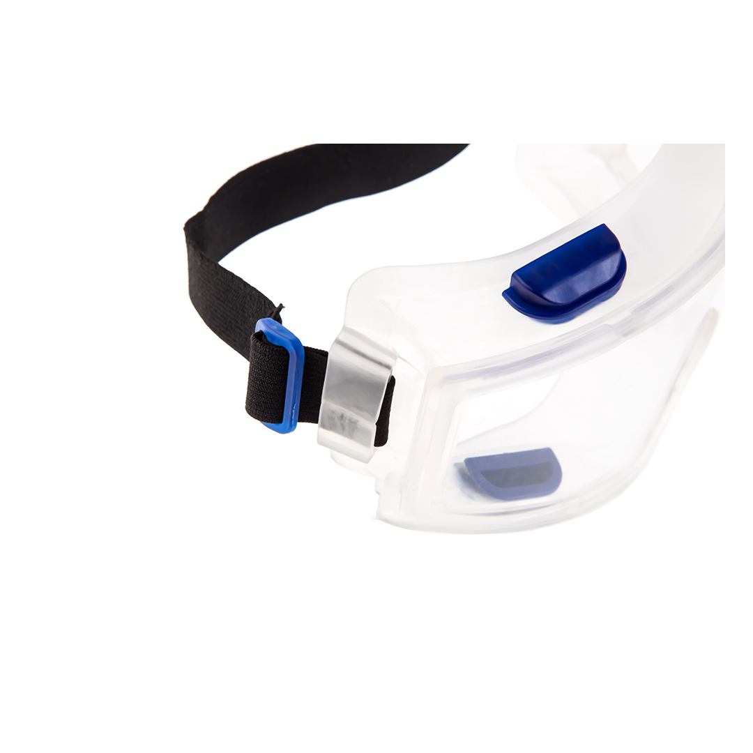 - Мягкий корпус очков отлит из ПВХ пластика с широкой полосой обтюрации.