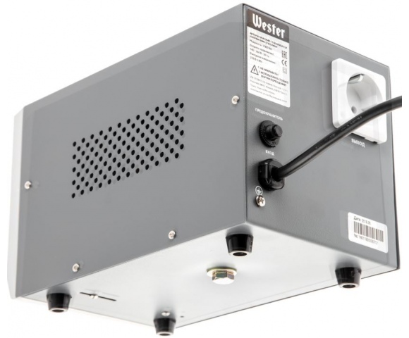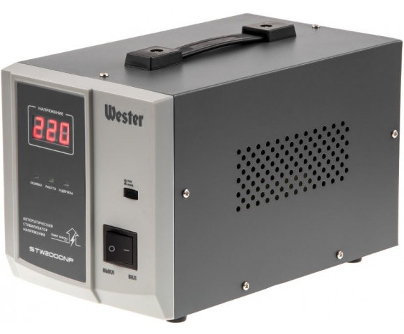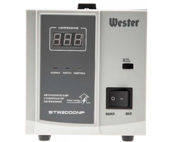 Стабилизатор напряжения WESTER STW2000NP релейного типа предназначен для выравнивания входного напряжения и защиты приборов от перепадов напряжения с суммарной мощностью до 2 000 ВА. Стабилизатор поддерживает выходное напряжение 220В с точностью +/-8%. Устройство оснащено фильтрами сетевых помех, предотвращающими отклонение выходного напряжения от синусоидальной формы, микропроцессорным управлением и цифровым индикатором напряжения, на котором отображаются значения входного и выходного напряжений. При выходе входного напряжения за допустимые пределы стабилизатор автоматически отключает подачу питания на выходные розетки. Прочный корпус защищает внутренние узлы аппарата от повреждений. Данный стабилизатор может обеспечивать стабильным питанием любую бытовую или офисную технику - телевизор, спутниковый ресивер, DVD проигрыватель и прочие бытовые приборы.